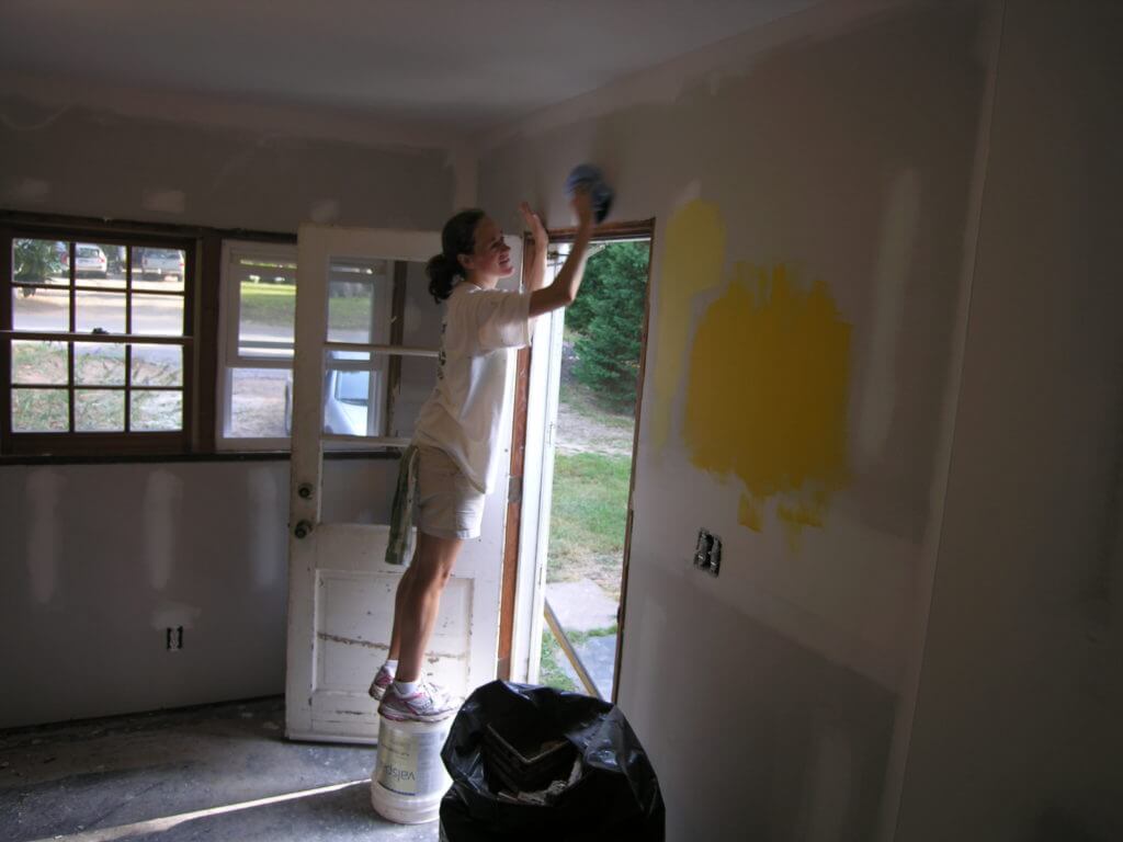 Putting in sweat equity by painting walls at our first house (which we later rented)